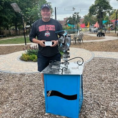 Description: A trash bin re-imagined to be a piece of art at the Park!