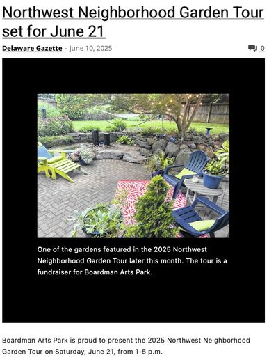 "Boardman Arts Park is pleased to offer two concerts during the month of July as part of its Performance in the Park series."