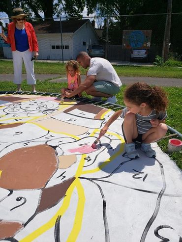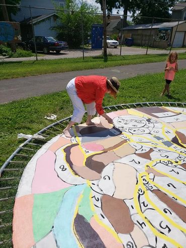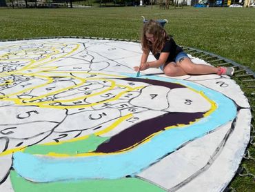 Created on a repurposed trampoline as a paint by numbers project by the community in 2021, Project Freedom is a colorful and meaningful piece to attract, educate, comfort and inspire the community at large.